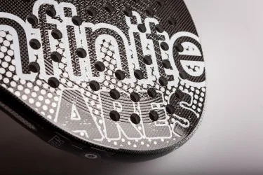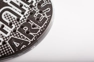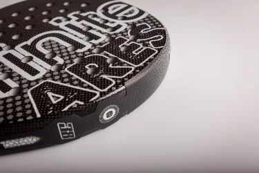 CGP: Sistema de relieve híbrido. Cuando la bola golpea en la zona central de la pala, conseguimos un mayor control de la bola, que esta gire un 30% más, y que salga más despedida. En la zona exterior al punto dulce de la pala el relieve va paralelo al marco para conseguir que cuando la bola se deforme en el impacto quede atrapada entre el relieve y consigamos que salga en la trayectoria deseada.